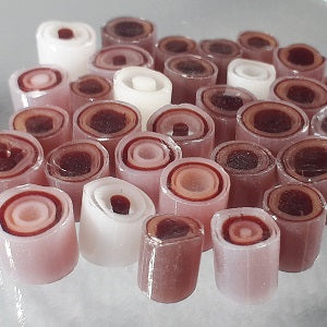 Canes are approx 1-3" long and will vary widely in diameter. If you need slices that are thicker or thinner than 1/4" or if you need multiple slices that are similar, the canes are a better choice than the individual slices. If we cannot get the canes to equal an exact ounce, we may throw in a few slices to get to the one ounce weight.