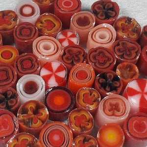 These quarter pound variety packs are murrini from many different batches that have been combined all focused on one color. This style is focused on REDS!