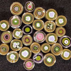 Murrini Man© murrini is pulled by hand by Ted Mumford, an artist working in the Pacific Northwest region of the United States. Each batch is made using only the highest quality equipment, and ONLY Bullseye Glass.