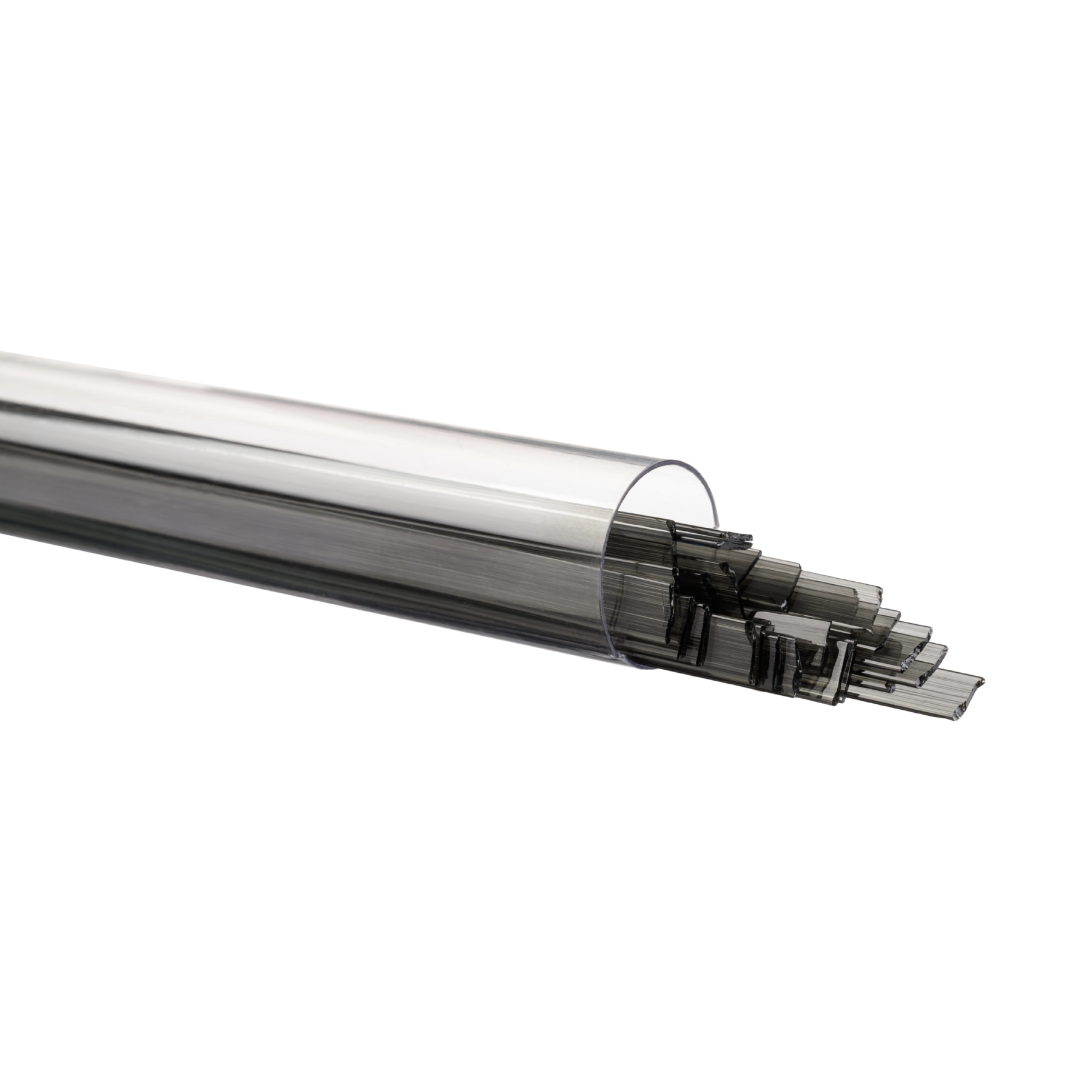 Ribbons are approximately 17.75" (451 mm) long, 4-5mm wide, and fettuccine-flat. Each ribbon expresses its handmade origins through slight organic variations in width and straightness. They are packed in clear plastic tubes that are 18" (457 mm) long and 0.75" (19 mm) in diameter, with approximately 32 pieces per tube.