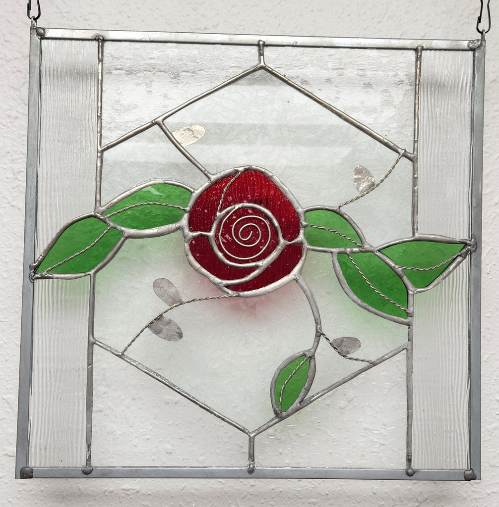 In this workshop, we will focus on creating a 12"x12"square/rectangle piece with repetitive, sometimes angular types of cuts. You will use a Morton strip cutter and a lapidary grinder to create a border, in addition to the tools used in the SG 101 & 102 courses. You will also learn how to accurately square up your project and frame with a heavier zinc came than what we used in the 102 class.