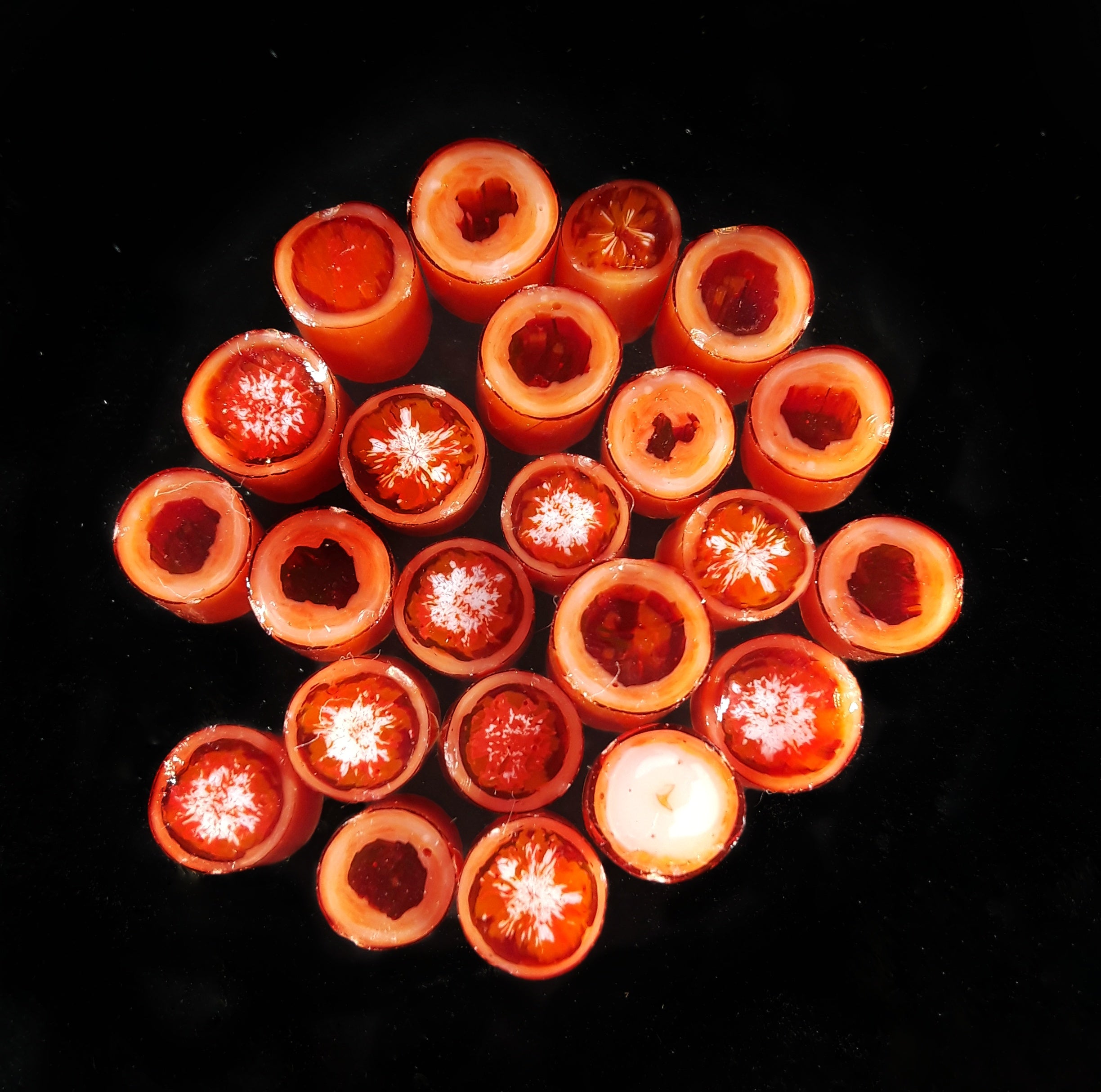 Canes are approx 1-3" long and will vary widely in diameter. If you need slices that are thicker or thinner than 1/4" or if you need multiple slices that are similar, the canes are a better choice than the individual slices. If we cannot get the canes to equal an exact ounce, we may throw in a few slices to get to the one ounce weight.