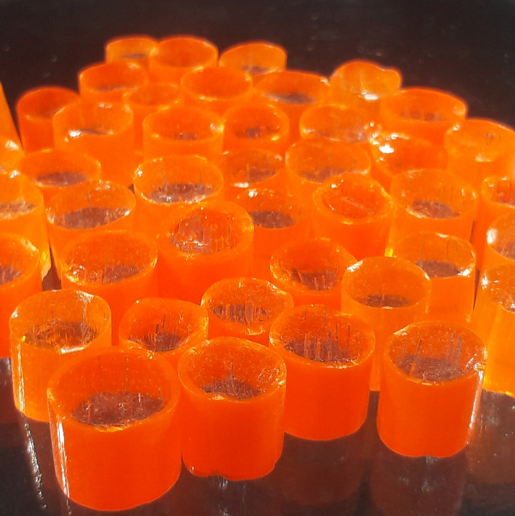 Aura Series: Orange Aura is part of Murrini Man's exploration into creating murrini that allows light and ambient colors to transmit through the finished piece. This style of murrini with clear centers are part of the Aura Series and there are many colors and styles to choose from.