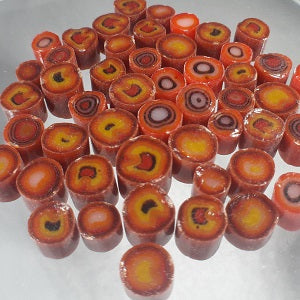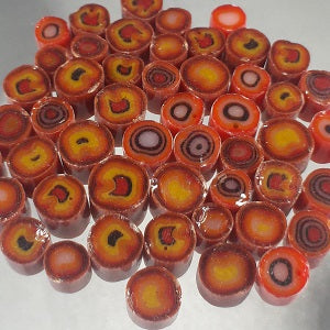 Murrini Man© murrini is pulled by hand by Ted Mumford, an artist working in the Pacific Northwest region of the United States. Each batch is made using only the highest quality equipment, and ONLY Bullseye Glass.