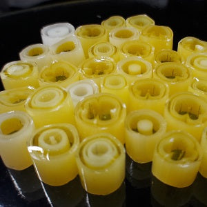 Canes are approx 1-3" long and will vary widely in diameter. If you need slices that are thicker or thinner than 1/4" or if you need multiple slices that are similar, the canes are a better choice than the individual slices. If we cannot get the canes to equal an exact ounce, we may throw in a few slices to get to the one ounce weight.